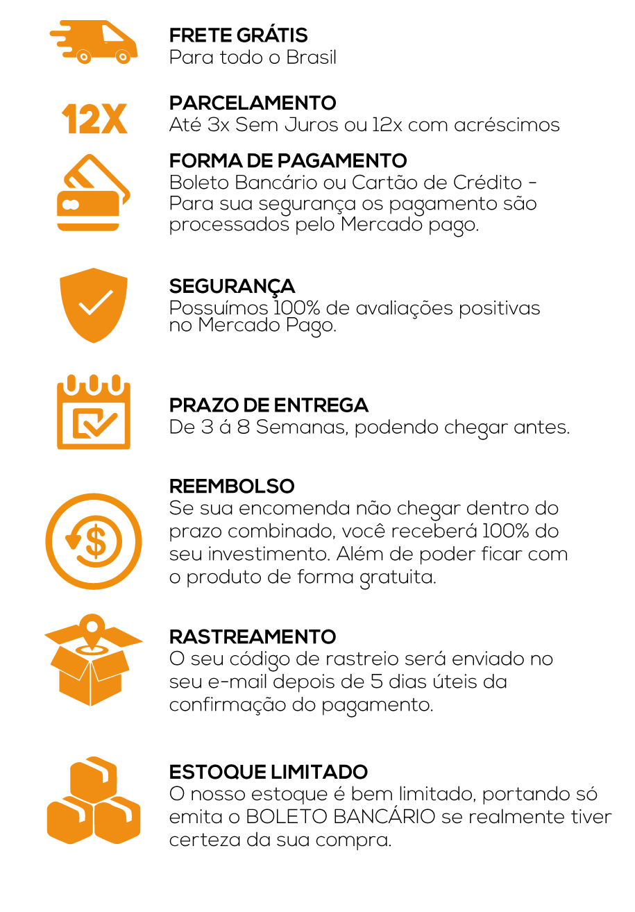 Atenção: O tempo estimado para entrega é de 3 dias úteis, pois nossos produtos chegam dos Estados Unidos, Ásia e Europa. e china