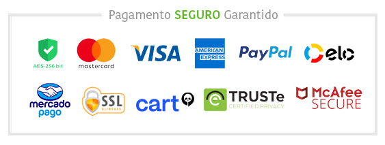 Sua compra é realizada através do MercadoPago , maior plataforma de pagamentos online do Brasil. Fique tranquilo(a), sua compra está segura.